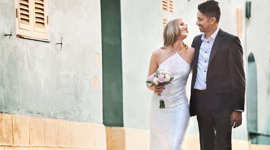 En esta ocasión además del fabuloso jardín botánico en el Dell donde a diferencia de otras bodas nos pusieron un arco que mejoró sustancialmente las fotos de boda, por lo que nuestra recomendación para futuras parejas que vayan a casarse en el Dell del jardín botánico de Gibraltar es la de preguntar por sustituir la sombrilla del sol por un bonito y elegante arco de bodas, desde el Dell paseamos por las estrechas calles de Gibraltar, calles llenas de colorido que merecen la pena visitar, también lleno de colorido son las casas de Catalan bay a la espalda del peñón de Gibraltar, un lugar que hay que visitar, pero cuidado donde dejan el coche porque la broma nos salió cara tuvimos que pagar para quitar el cepo, los vecinos están atentos a que nadie aparque en la zona, desde aquí cruzando el túnel nos acercamos al faro donde tienes la puesta del sol más bonita de la roca, y acabar un nuevo escenario donde nunca habíamos estado pero que nos sorprendió por lo bonito y a pesar de tener muy poca luz pudimos aprovechar con una espectaculares fotos de bodas, se trata de la marina, un espacio lleno de yates, bares, pub donde hay un bonito ambiente alrededor del majestuoso sunborn el yate hotel de 5 estrellas de Gibraltar donde además puedes celebrar tu boda.